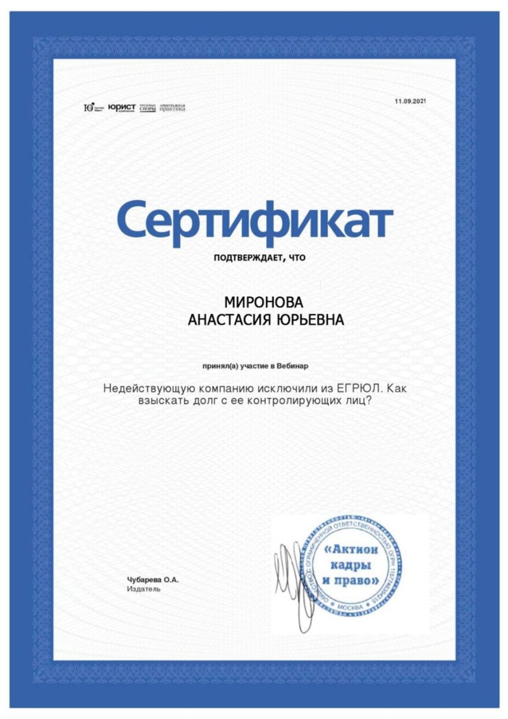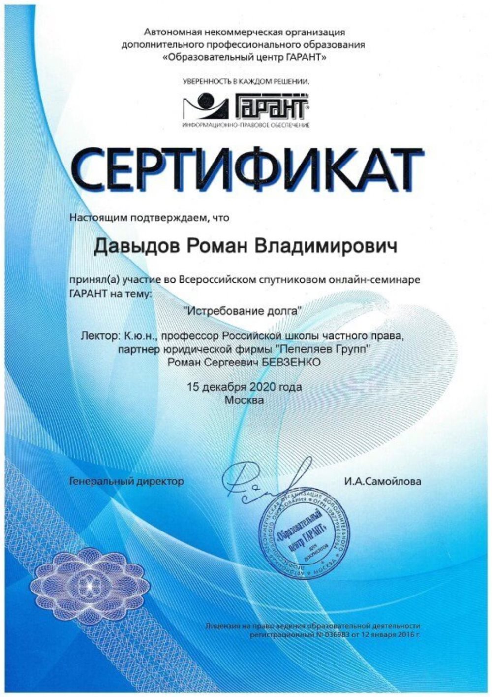 Участие в семинаре «Истребование долга»