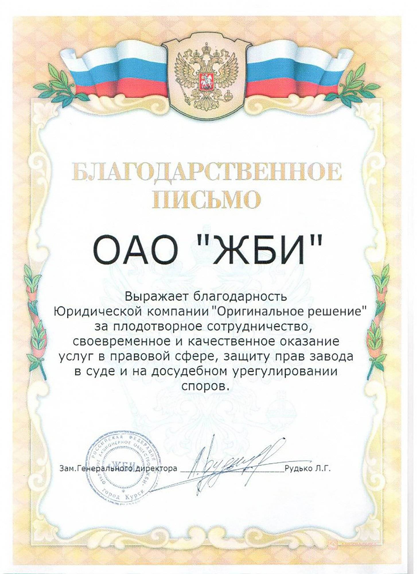 Картинка Письмо от ОАО "ЖБИ"