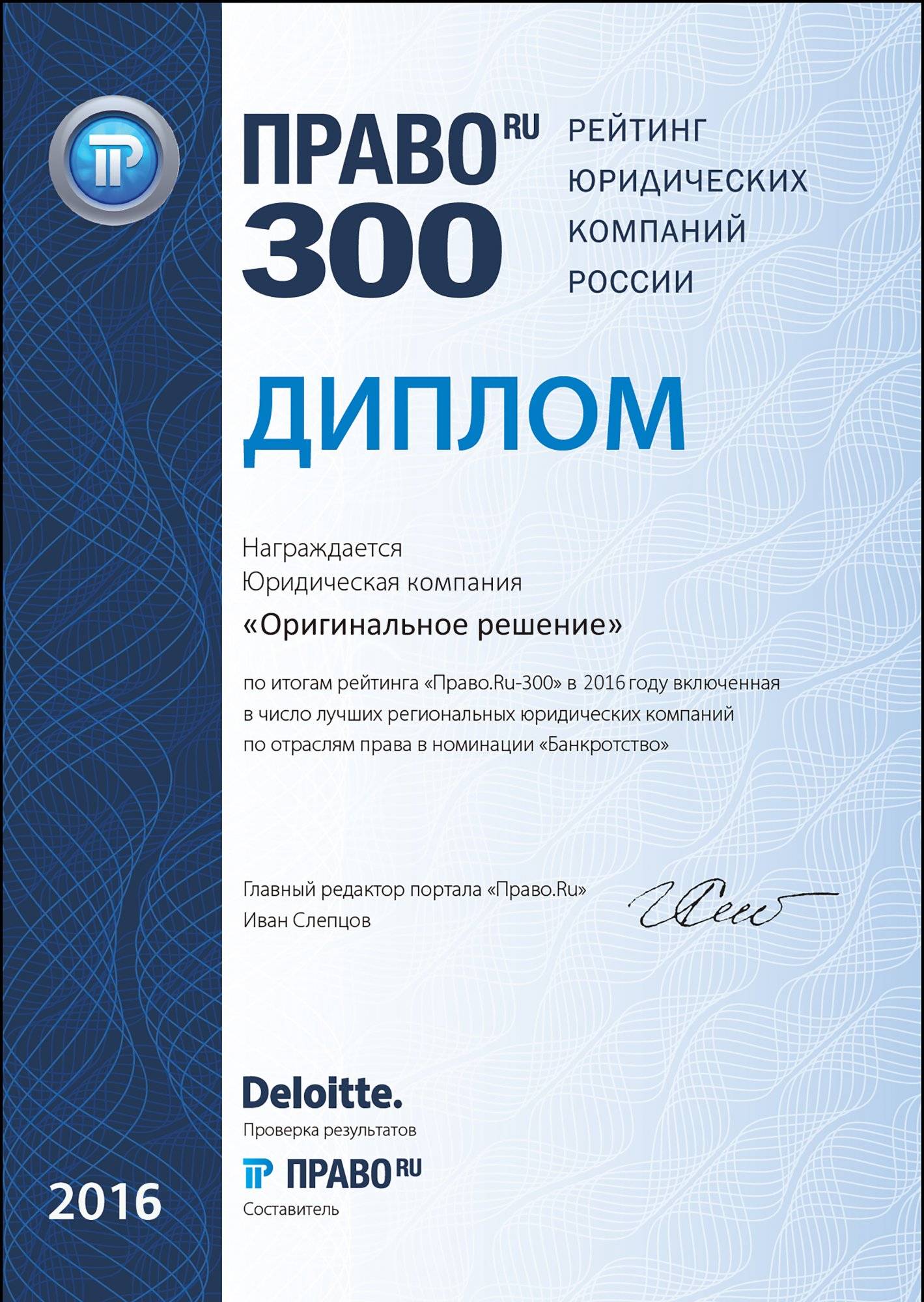 По итогам рейтинга, компания включена в число лучших региональных компаний в номинации "Банкротство".