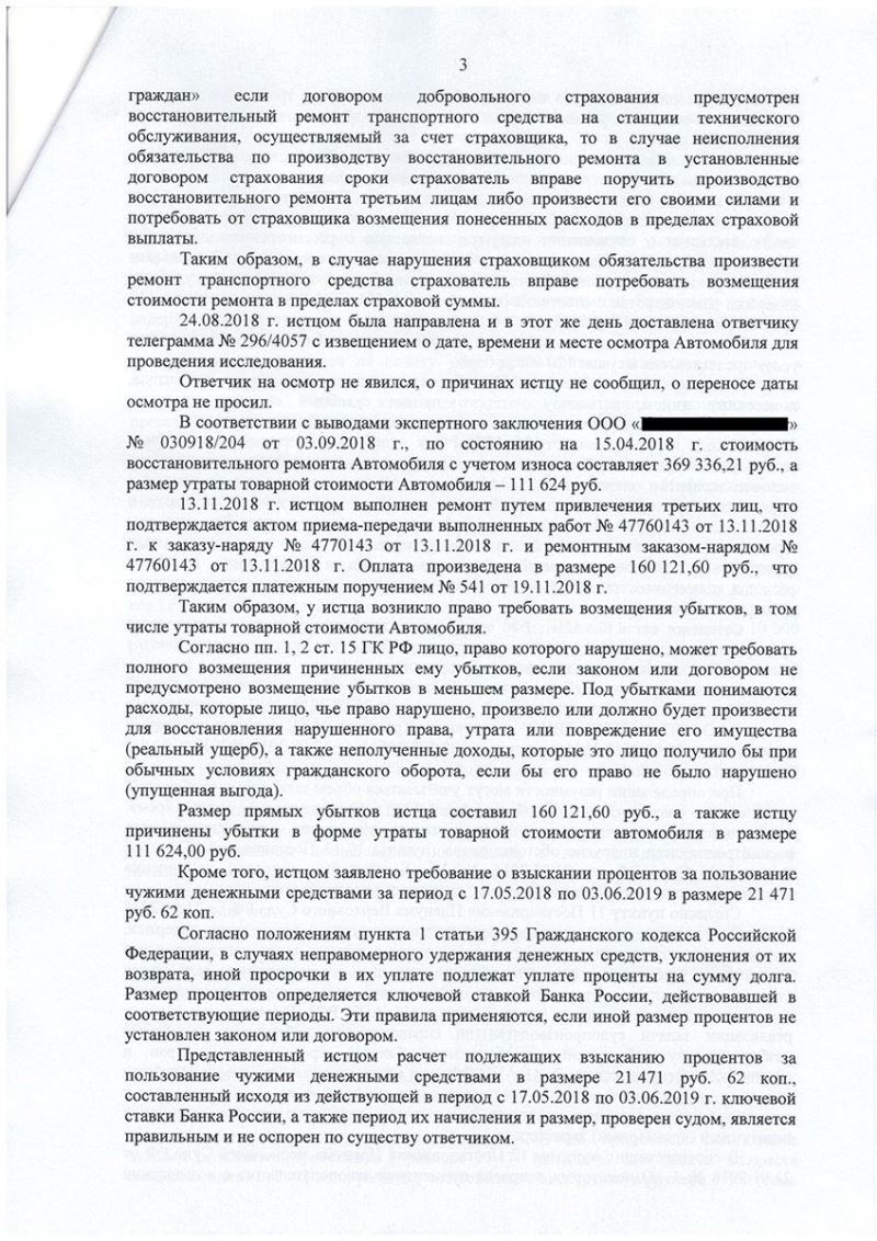 • Защищены права клиента по регрессному иску страховой компании