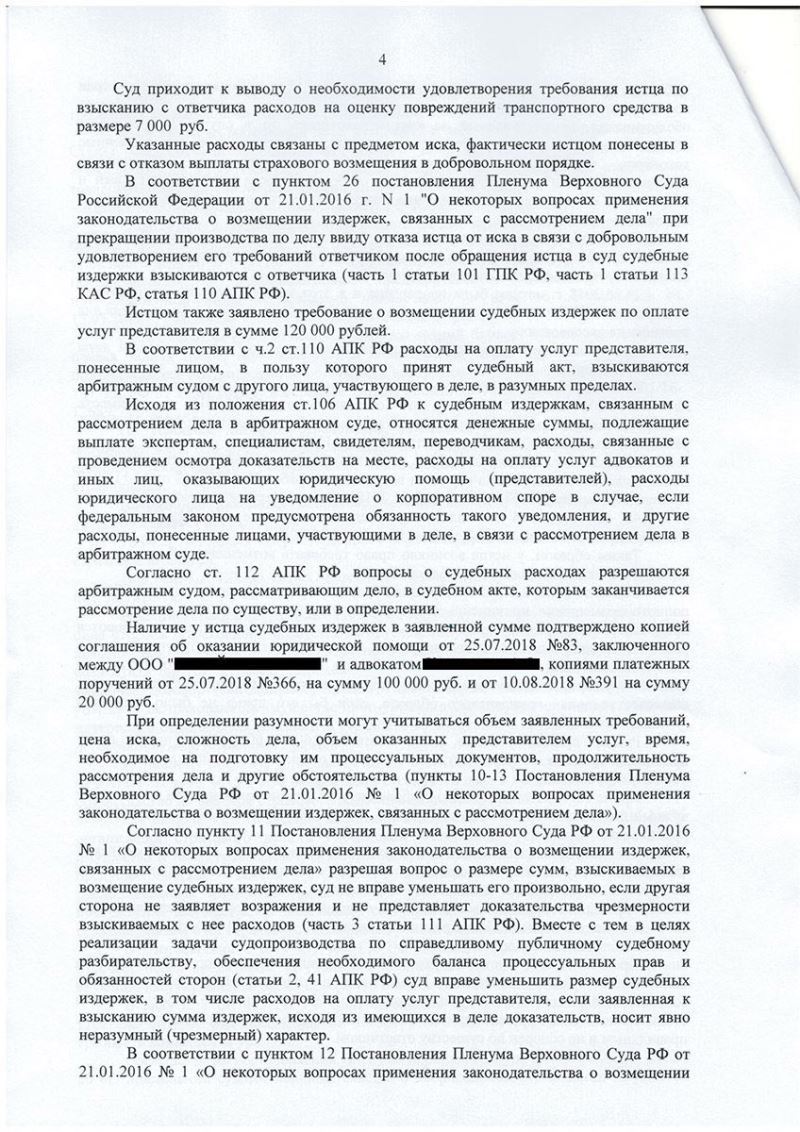 • Отказ во взыскании 100 000 руб. юрфирме