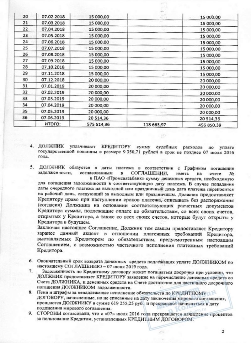 В результате переговоров с юристом банк не только простил больше половины долга, но и дал отсрочку на 3 года для выплаты оставшейся суммы.