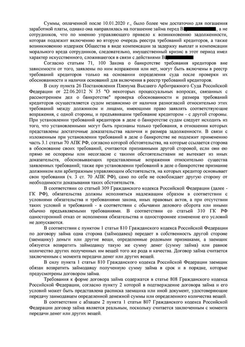 ООО «Б...» имело непогашенную задолженность перед клиентом В. по договору займа и оказалось в процедуре банкротства.