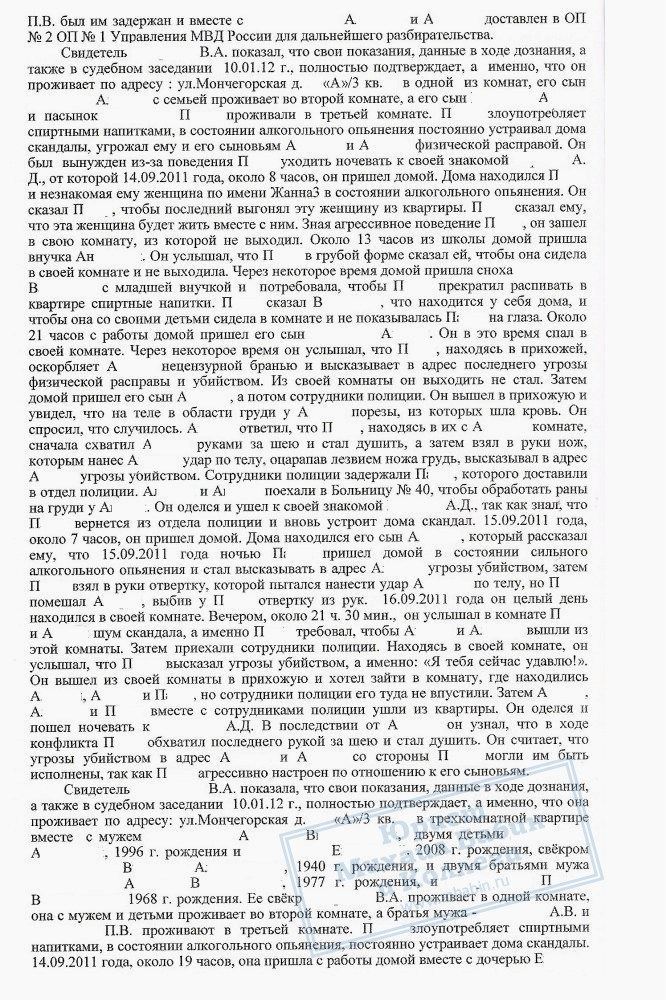 В августе 2013 года руководитель нашей компании проводил защиту по уголовному делу П.В., который неоднократно являлся инициатором конфликтов со своими родственниками на бытовой почве и с причинением вреда здоровью. Данный факт подтвержден всеми свидетелями и потерпевшими по делу, однако сторона обвинения изначально неверно квалифицировала деяния П.В.