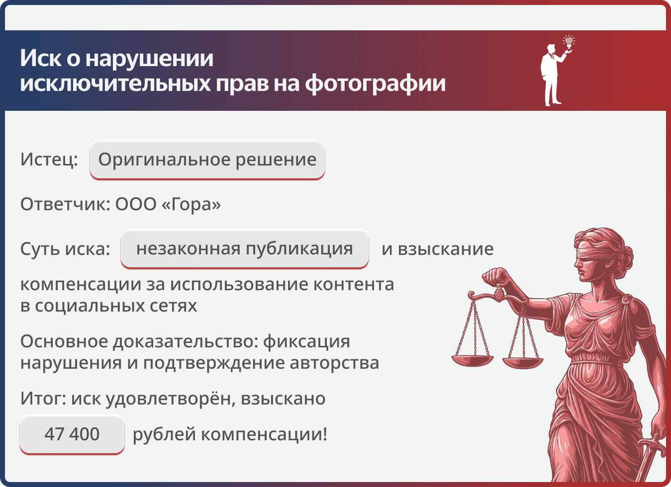 Защита авторских прав: как юристы «Оригинального решения» взыскали компенсацию за одно фото.