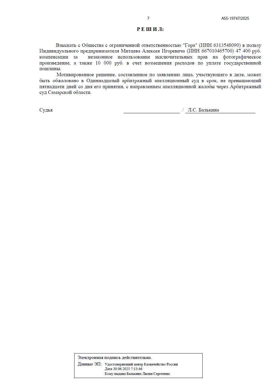 Однако популярность фотографий неизбежно приводит к рискам — изображения нередко используют без разрешения. Чтобы защитить свои права и сохранить контроль над собственным творчеством, Сергей обратился к нам. За юридическое сопровождение отвечал Егоров Андрей, который помог зафиксировать нарушения, подготовить необходимые документы и выстроить стратегию защиты.