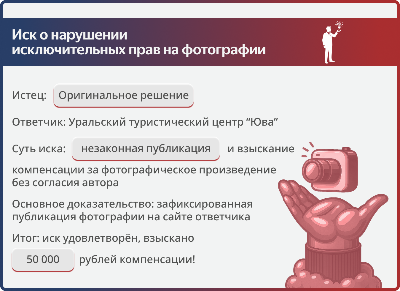 Защита авторского права: взыскали 50 000 рублей за одну фотографию.