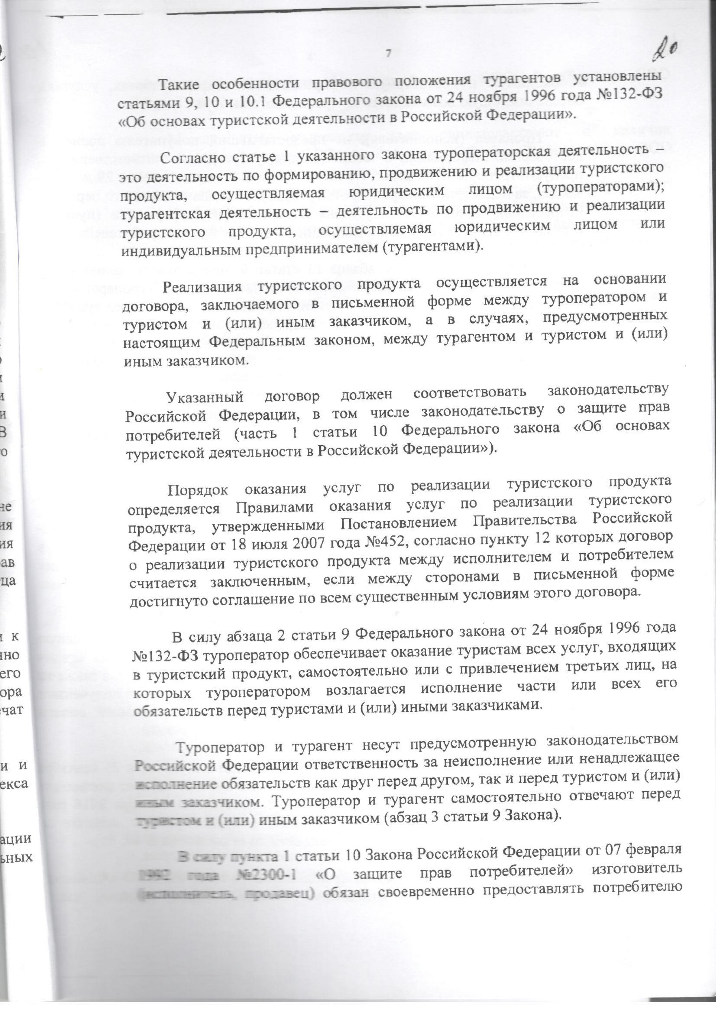 Дело о возврате денежных средств за тур